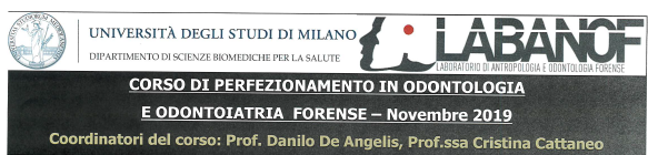 | Corso di perfezionamento in Odontologia e Odontoiatria Forense | 08 Nov 2019 | Istituto di Medicina Legale - Dipertimento Scienze Biomediche per la Salute - Milano | | |