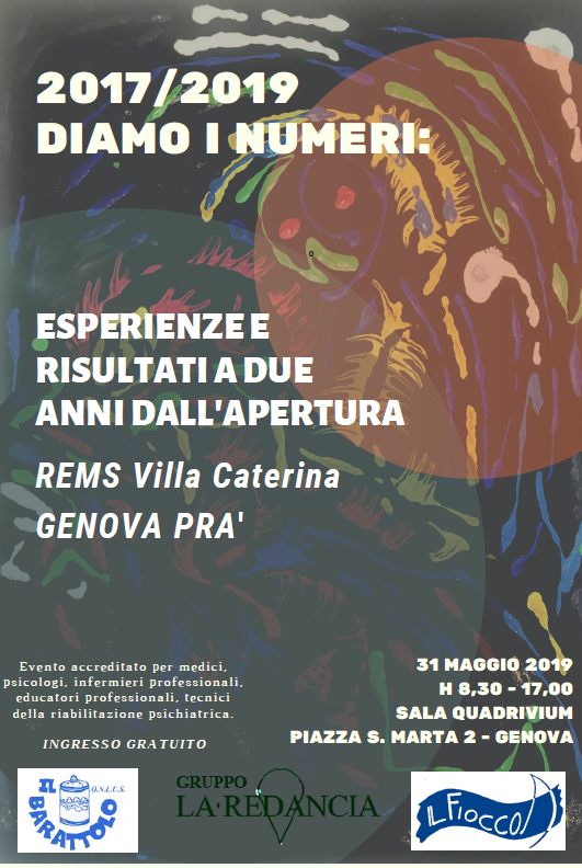 | 2017/2019 Diamo i numeri: Esperienze a due anni dall'apertura - REMS Villa Caterina | 31 Mag 2019 - 8:25 | Sala Quadrivium - Genova | | |