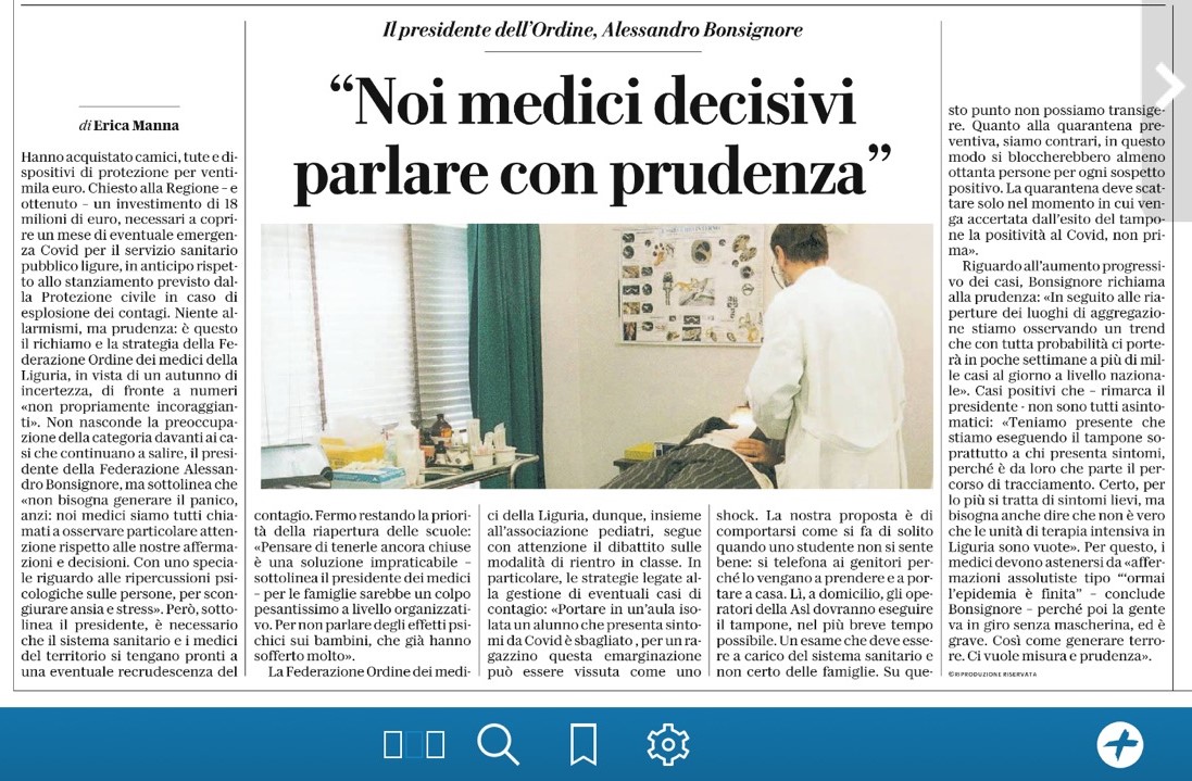 da La Repubblica: "Noi Medici decisivi parlare con prudenza" intervista al Prof. Bonsignore