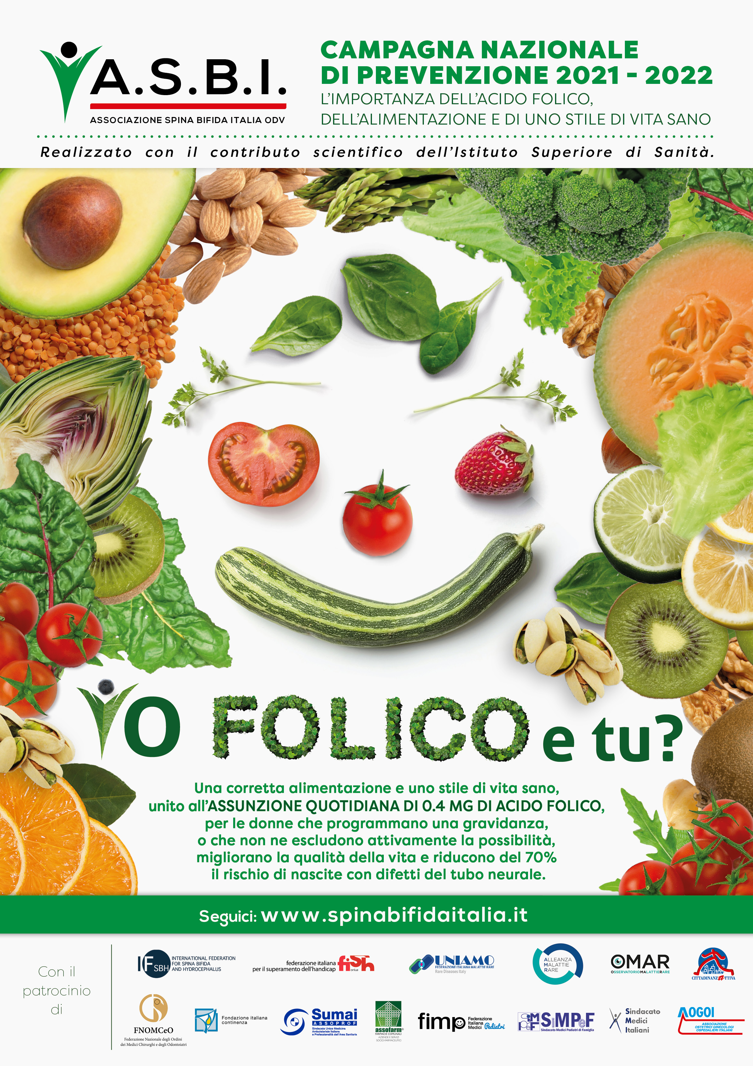L'iniziativa è stata patrocinata dalla FNOMCeO https://portale.fnomceo.it/campagna-nazionale-di-prevenzione-2021-2022-asbi-limportanza-dellacido-folico-dellalimentazione-e-di-uno-stile-di-vita-sano/